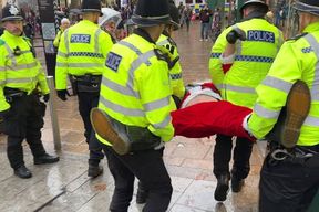 'Santa Claus' cries 'ho ho ho' as police drag him through UK city centre