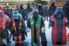 Faith leaders protest deportation flights at international airport while businesses statewide close in solidarity