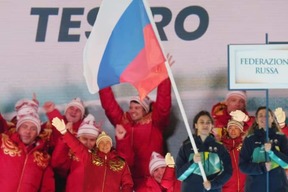 Athletes from Russia and Belarus parade behind their nations' flags at the opening ceremony of the Milan-Cortina Winter Paralympics as the 50th anniversary edition of the Games officially gets under way.