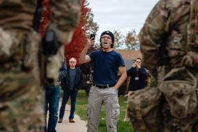 "The only thing I ask for is quiet," the heavily armed and masked Colombian troop commander whispers.