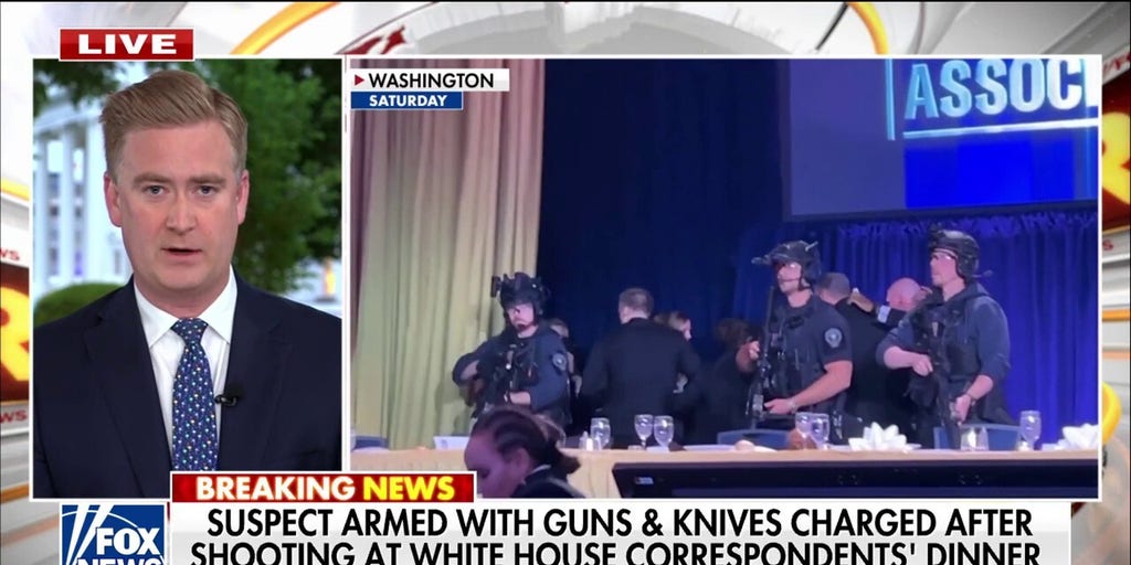 Senior White House correspondent Peter Doocy reports live from the White House on the Correspondents' Dinner shooting, detailing his conversation with President Donald Trump about the incident and past threats against political figures.