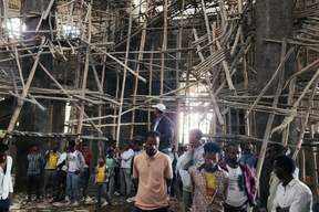 Scaffolding set up for a Virgin Mary festival at an Ethiopian church collapsed, killing dozens and wounding more than 200, state media say.