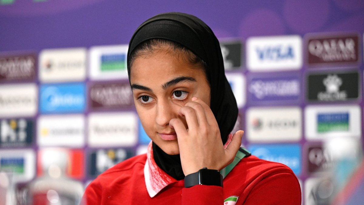 Iranian striker Sara Didar fought back tears on Wednesday as journalists asked about the escalating conflict engulfing her homeland. The 21-year-old...