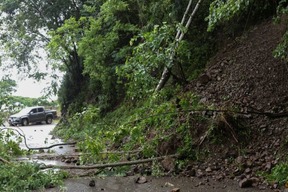 Fierce winds ripped roofs from buildings, and massive boulders crashed down onto roads, cutting off access across the region.