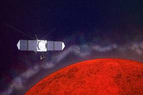 Interstellar comet swinging past Mars as a fleet of spacecraft looks on