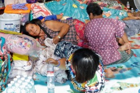 Families in southern Thailand perch on rooftops to escape flooding that has killed at least 33