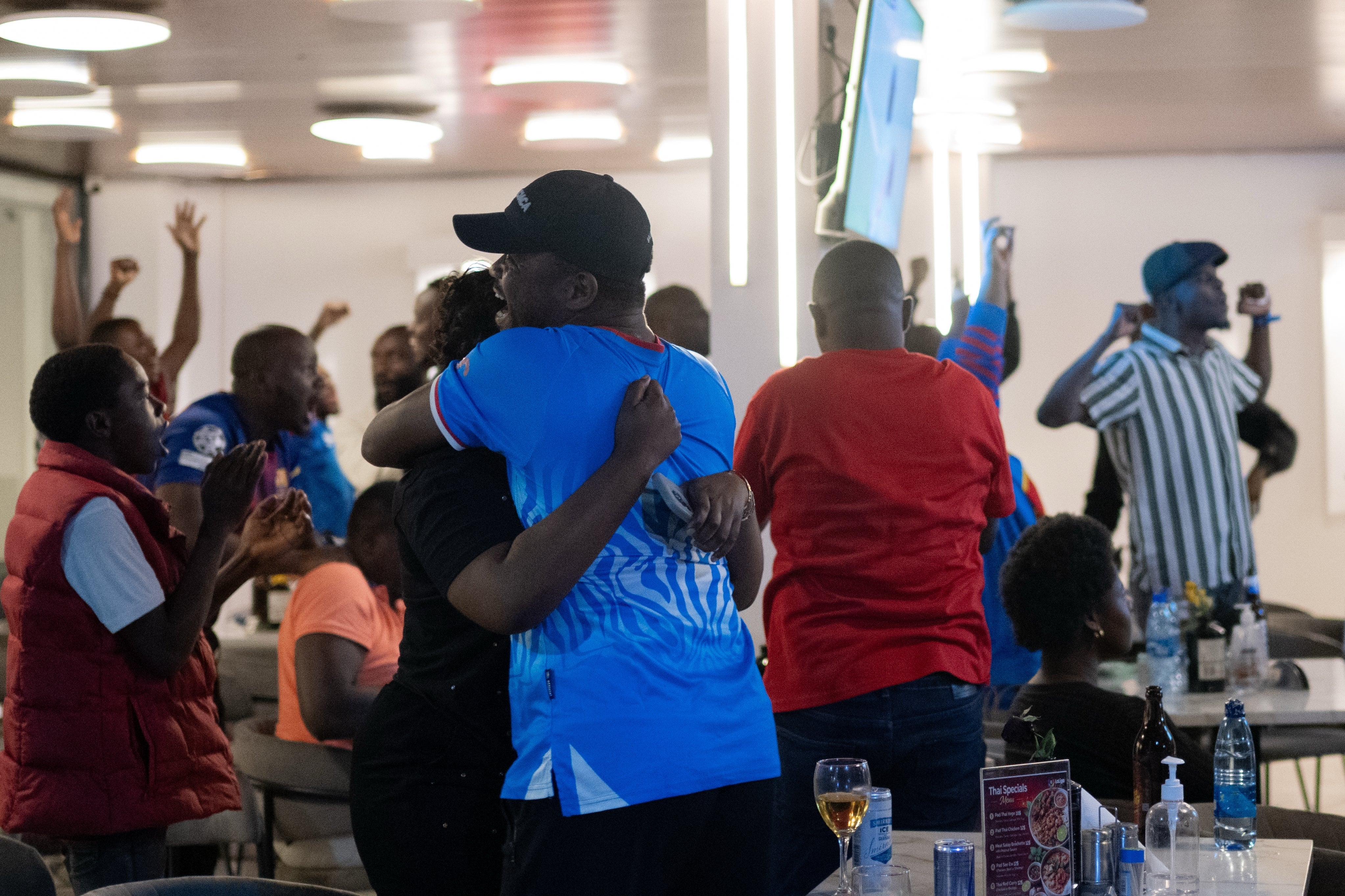 Fans braved heavy rain to celebrate as the Democratic Republic of the Congo beat Jamaica in extra time.